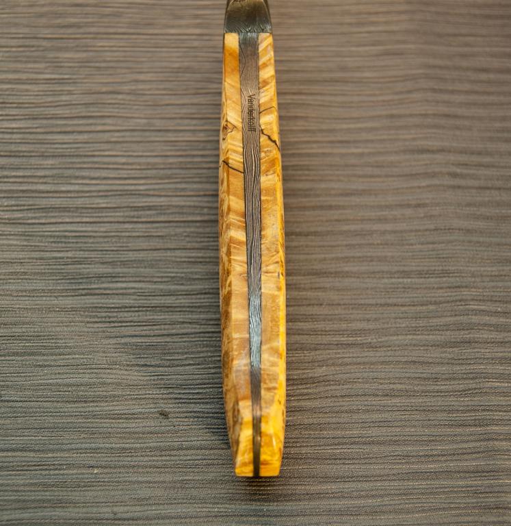 overall length 9" ladder pattern high carbon damascus stabilized maple burl