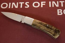 This is a slip joint 3 1/4" long closed and 5 3/4" long open. The integral bolster and body are 416 with a 154CPM blade and back spring. It uses the Dellana Dot grip system for ambidextrous opening. It is a snappy little blade with a medium to medium hard pull.