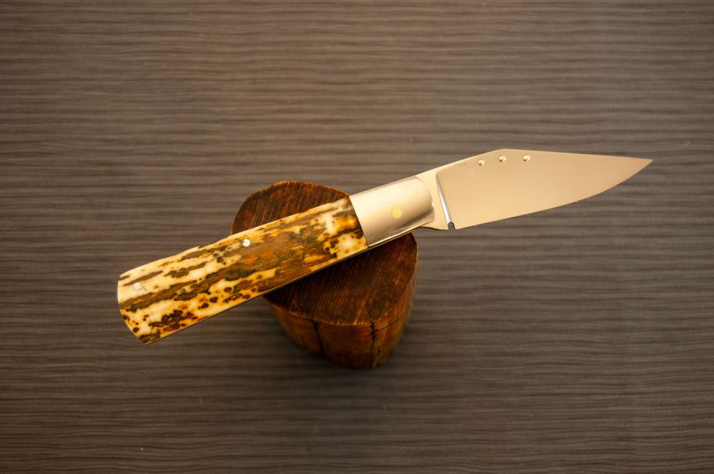 Bark Ivory Barlow Closed 4 1/4", open 7 1/2" Blade and Back Spring CPM154 Body with Integral Bolster is 416 Covers are Bark Mammoth Ivory Dellana Dot Grip System $500 USD Delivered