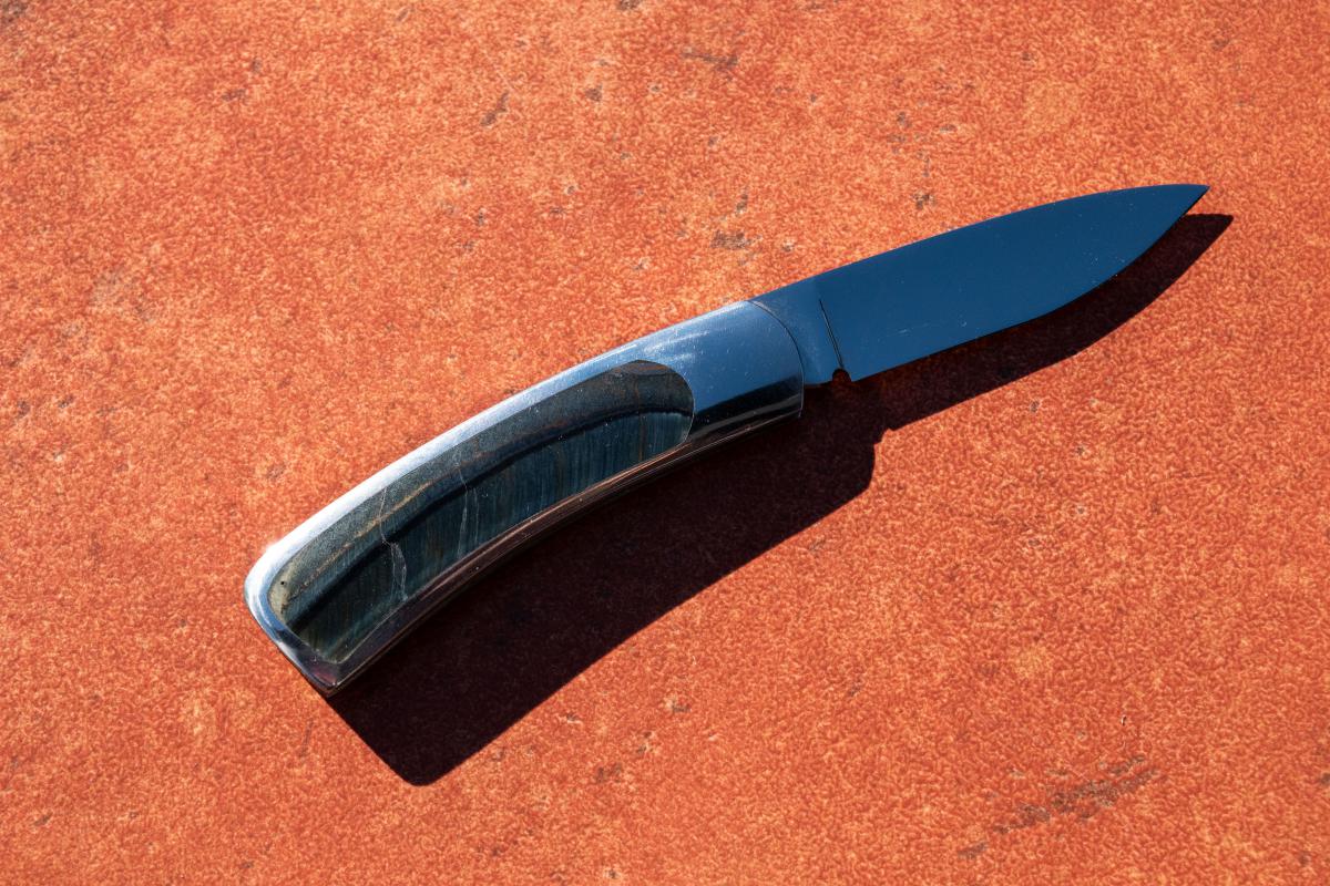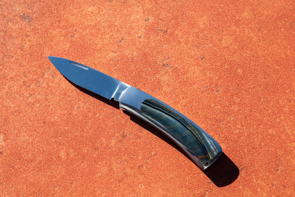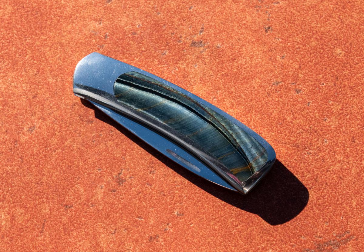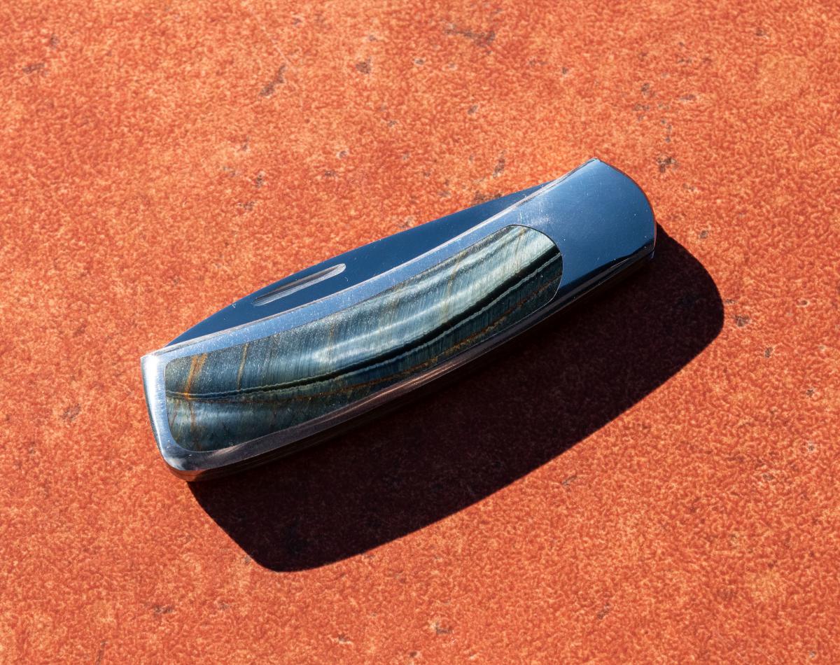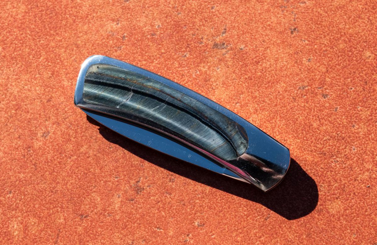 Inlay is Blue Tiger's Eye also known as Hawk's Eye