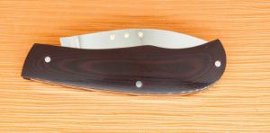 Here is the latest slip joint from the shop. It is a Nessie pattern, 3 1/2" closed. The scales are Maroon Micarta. It has no liners but the scales have been relieved. The blade and back spring are 154CPM It uses the Dellana Dot grip system which means it is ambidextrous as the raised dots are on both sides.