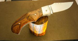 Closed Length 4 1/2", open length 7 1/2" Blade and Back Spring CPM154 Body with integral bolsters is 416 Accents are brass Dellana Dot Grip System Covers are Arizona Ironwood Available for Order